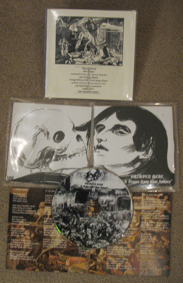 After taking bloody ages to decide on how to do the packaging properly finally this record is ready to drop! Grimpen Mire are one of the finest heavy bands in the UK right now and came on to my radar several years ago when I saw them playing the 1 in 12 in Bradford. This is "sludge" in that it's properly heavy and has tons of dissonance and screeching feedback, but these guys are from the "Sabbath home" of Birmingham and aim to hit you with the same bleak, grey life view that was so brilliantly captured on that opening toll of the first Sabbath record. There's not a stoner riff, a groovy chorus or an "ooh yeah" anywhere to be heard here (thank fuck!), this is